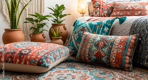 interior, cushion, rug, textile, pillow, decoration, home, decor, plant, plant, vase, cosy, pattern, living, room, bohemian, style, traditional, floor, design, indoor, background, blanket, furniture, decorative, vibrant, detail, bedchamber, comfortable, modern, aesthetic, elegance, ornamental, artistic, soft, serene, welcoming, natural, space, relax, atmosphere, arrangement, texture, composition, light, tranquil, botanical