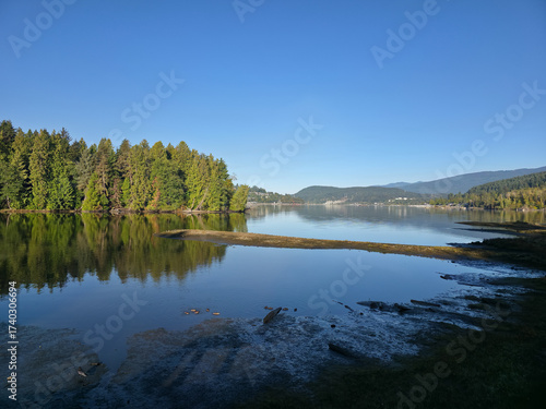 blue, british columbia, calm, canada, conifer, distant, evergreen, exploration, forest, forested, green, hiking, hill, lake, lakefront, landscape, morning, mountain, mountainside, natural, nature, outdoors, panorama, peaceful, peninsula, pine, quiet, quietness, scenery, serene, shore, shoreline, sky, tranquil, travel, tree, vacation, vancouver, vegetation, village, water, waterfront
