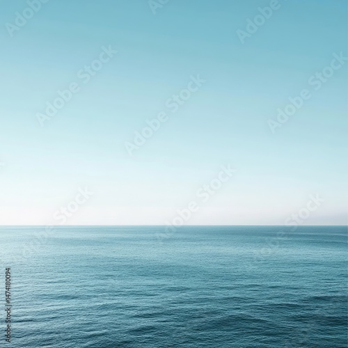 Tranquil ocean expanse under a serene sky. Vast blue water meets a pale blue sky