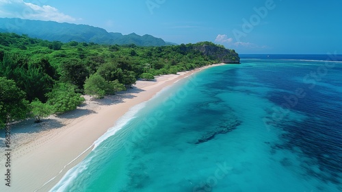 beach, lombok, indonesia, pristine, paradise, white, sand, turquoise, water, lush, vegetation, idylli, beauty, tranquil, serene, tropical, get-away, exotic, destination, remote, shoreline, clear, blue, sky, relaxation, peaceful, retreat, summer, vacation, travel, nature, coastal, landscape, escape