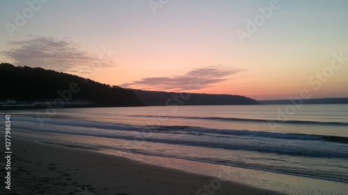 Tranquil Twilight Beach Scene with Gentle Waves
