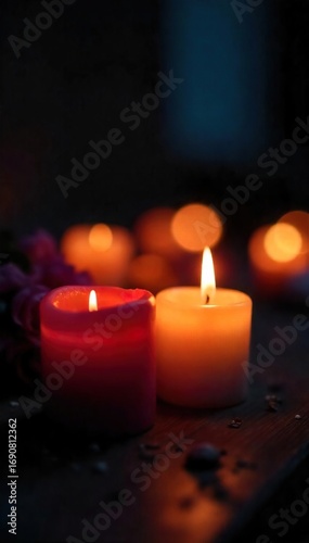 Tranquil Vigil Candles Soft Glowing Light in the Darkness, Perfect for Remembrance, Reflection, and Spiritual Themes. Peaceful Atmosphere, Contemplative Mood.