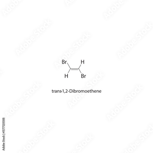 trans-1,2-Dibromoethene skeletal structure. Halogenated alkene compound schematic illustration. Simple diagram, chemical formula.