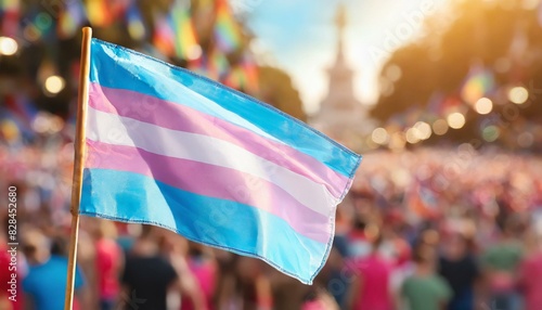 transgender flag on the background of the pride parade, lgbt pride month, fight against transphobia, tolerance