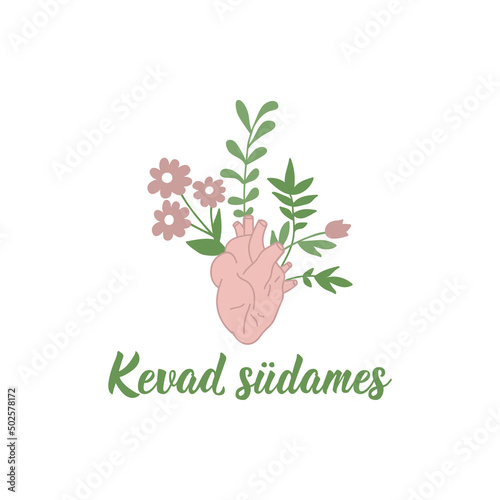 Translation from Estonian: Spring in the heart. Vector illustration. Lettering. Ink illustration.