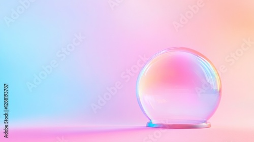 Translucent bubble reflects pastel colors, creating dreamy atmos