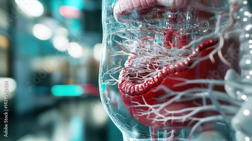 Transparent anatomy model of digestive system in medical lab