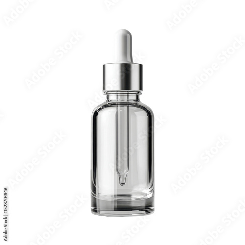 Transparent dropper bottle with a clean design for cosmetic or essential oil use in skincare applications Transparent background or png