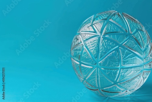 Transparent glass basketball and whistle on a light-aqua surface. Sharp edges and reflections. Sports and officiating in a modern composition.