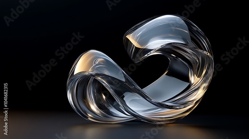 Transparent layered glass figure with smooth curves and reflective properties in a 3D render