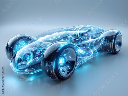 Transparent Neon Glass Futuristic Hovering Car with Sleek Aerodynamic Design and Luminous Accents