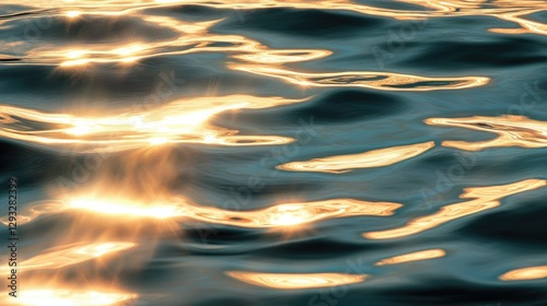 Transparent ocean surface, delicate ripples and waves shifting under the golden light, perfect for a serene and peaceful mood