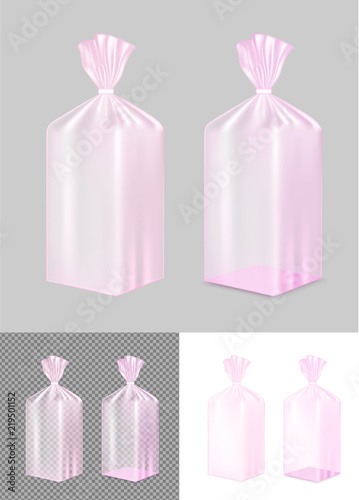 Transparent pink foil or paper packaging. Sachet for bread, coffee, sweets, cookies and gift