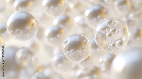 Transparent spheres filled with pearls, symbolizing nourishment and vitality in a fresh setting.