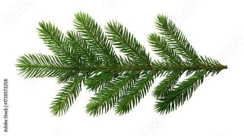 Transparent spruce branch isolated on PNG background, realistic evergreen fir twig for Christmas decorations, New Year holiday design, winter festive element.
