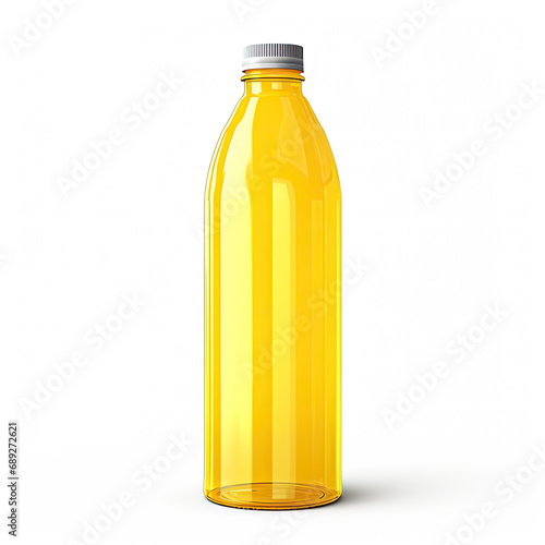 Transparent Yellow Bottle, Packshot Mockup Isolated on White Background