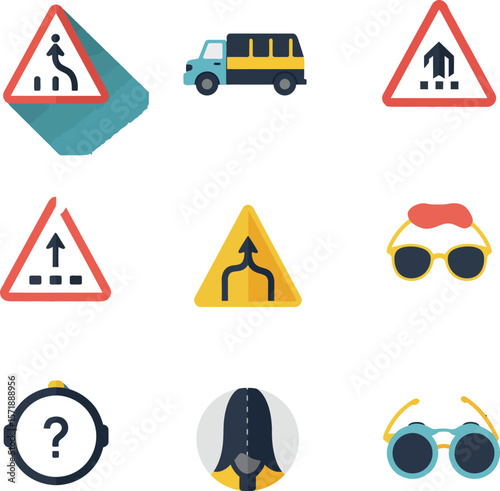 signs, warning, icon, symbol, road, danger, safety, traffic, vector, yellow, illustration, street, signs, set, caution