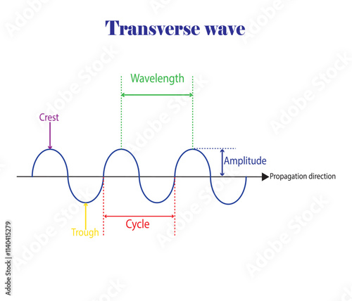 Transverse wave in physics. Study content for science students. Vector Illustration.