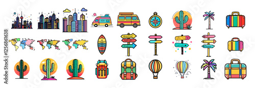 travel, adventure, nature, wanderlust, camping, hiking, road trip, backpacking, tour tourism, city skyline, compass, desert, cactus, sunset, hot air balloon, world map, mountain, tent, ocean, surfboard, signpost, tropical, palm tree, suitcase, vacation, scenic, journey, summer, holiday, global, sightseeing, discovery, nomad, get-away, coastal, tropical paradise