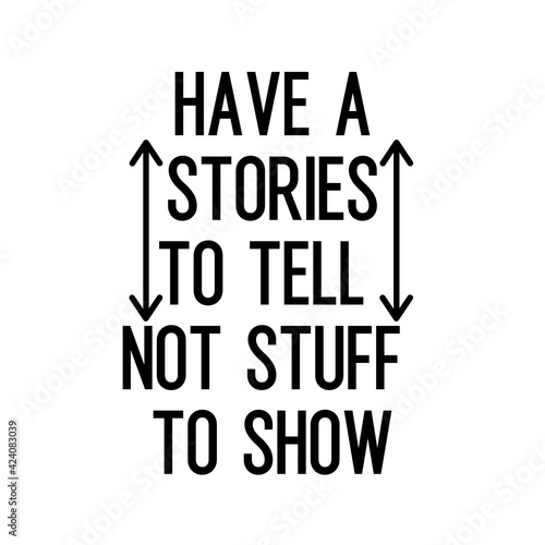 Travel and inspirational quote : have a stories to tell not stuff to show, quote for your social media