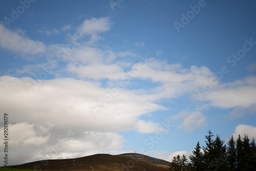 sky, landscape, mountain, nature, cloud, blue, cloud, hill, grass, summer, green, mountain, view, white, travel, panorama, tree, cloudy, field, countryside, day, beautiful, meadow, cloudscape, forest