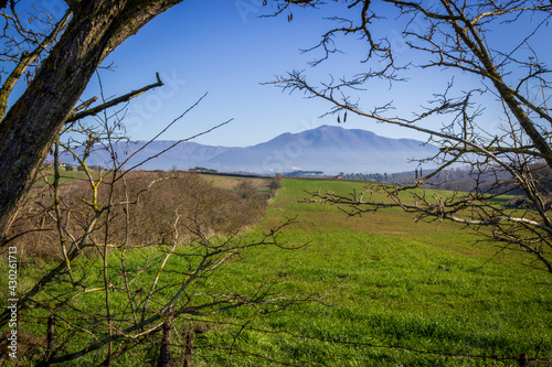 tree, landscape, nature, sky, grass, green, forest, tree, field, countryside, blue, mountain, hill, summer, meadow, view, spring, park, rural, beautiful, tree branch, scenery, cloud, mountain