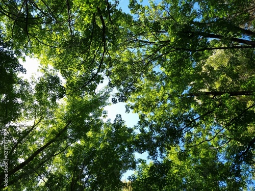 tree, nature, sky, leaf, tree branch, crown, forest, foliage, spring, wood, plant, sunlight, natural, park, season, environment, summer, sun, leaf, tree, branch, wood, light, green, blue, lush, background, twig, freshness, bright