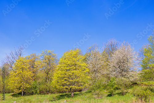 spring, tree, lush, green, landscape, greenness, fruit tree, cherry tree, cherry blossom, beautiful, meadow, country, bud, countryside, tree, fruitbody, greenery, scenic, scenery, blue, copy space, foliage, nature, nobody, outdoors, scene, sky, springtime, sunlight, sunny, sunshine, tranquil, day, deciduous, forest, grove, idylli, germinating, timberland, wood, awesome, absent, view, clear sky, cloudless, blooming, flowering, in bloom, blossom