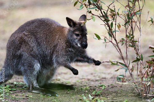 brown, captivity, cute, eating, feeding, jumping, kangaroo, plant, small, tree, zoo