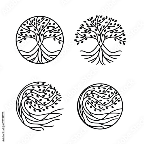 Tree logo icon set design. Garden plant natural symbols template. Tree of life branch with leaves business sign collection. Vector illustration.