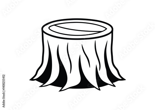 Tree stump line art silhouette vector for nature, forest, and environmental themes