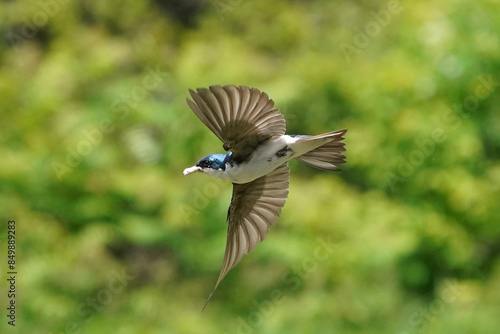 Tree SWallow parents working hard to feed chicks in nesting box in summer