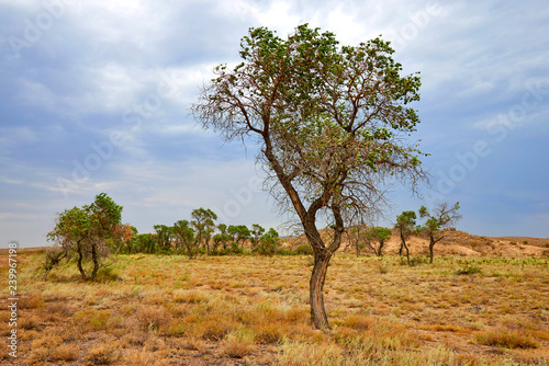 Tree turanga (Populus pruinosa) in the desert steppe. Turanga - relic poplar.