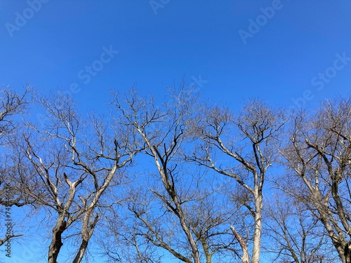 trees against blue sky in winter