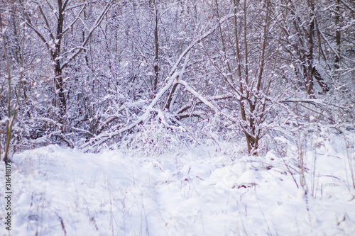 trees and bushes in the snow, beautiful winter background