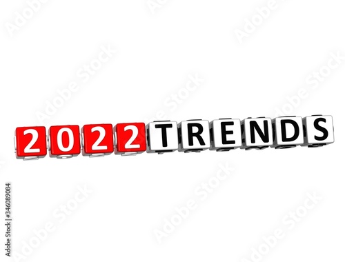 Trends 2022. 3D red-white crossword puzzle on white background. Creative Words.