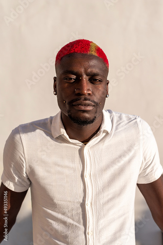 accessory, african american, appearance, beard, black, blurred background, bright, brown eyes, carefree, charismatic, confident, contemporary, cool, earring, gaze, glance, guy, individuality, male, man, modern, moustache, personality, piercing, portrait, red hair, self-assured, serious, racked, stare, style, sunbeam, sunlight, sunshine, trend, trendy, unshaved, youth