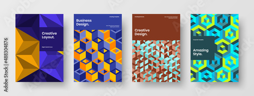 Trendy handbill design vector concept bundle. Original geometric shapes postcard layout collection.
