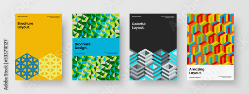 Trendy mosaic shapes company identity template set. Unique magazine cover design vector concept collection.