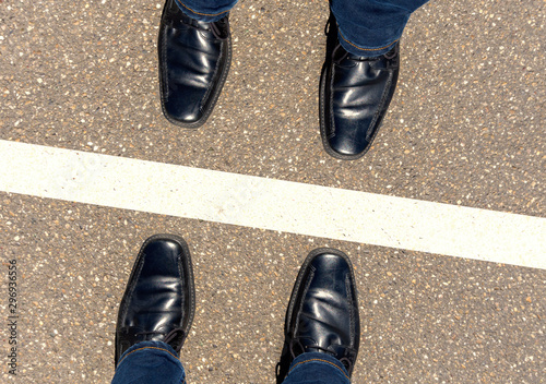 Trennlinie auf der Straße zwischen zwei Rivalen