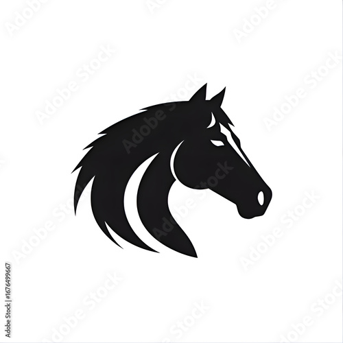 tribal vector horse head silhouette, decorative lines and curves, black and white, abstract style