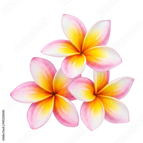 Trio of Delicate Frangipani Blossoms isolated on a transparent background