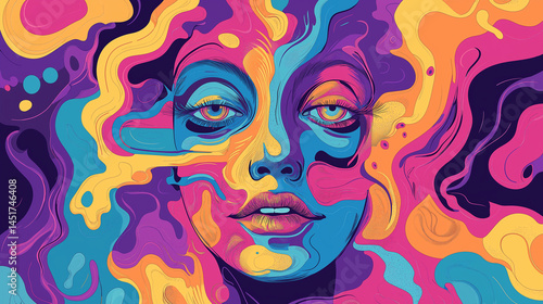 woman, face, hallucinogen, cool, colours, art, illustration, surreal, portrait, abstract, closeup, smile, goggles, open, eye, vibrant, dreamy, fantasy, design, expression, graphic, bold, pattern, style, chill, vector, halloween, skull, evil, head, horror, zombie, scarey, fashion, beauty, monster, cartoon, black, party, fire, tattoo, red, hair