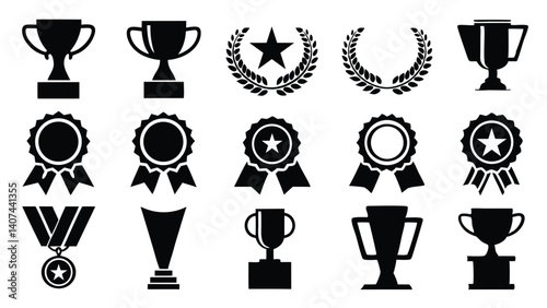 Trophy and Award Icon Set – Black & White Silhouette Vector Collection