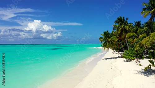 beach, turquoise, ocean, white, sand, palm, sky, cloud, blue, paradise, tropical, vacation, idylli, serenity, nature, scenic, summer, tranquil, beautiful, water