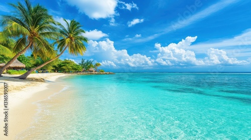 beach, ocean, tropical, paradise, vacation, summer, travel, sun, sea, coast, turquoise, water, calm, wave, sand, palm tree, resort, relaxation, beautiful, scenic, idylli, stunning, island, blue, sky, cloud, nature, tour tourism, destination, get-away, amazing, picturesque, tranquil, serenity, colourful, vibrant, warm, sunny, exotic, pristine, calmness