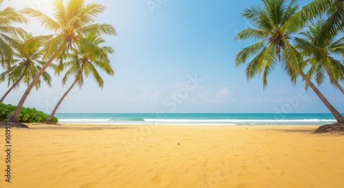 beach, sand, ocean, palm tree, tropical, paradise, vacation, summer, sun, sky, sea, gold, turquoise, nature, travel, relaxation, holiday, sunshine, palm tree, shore, coast, water, wave, light, view, beautiful, empty, panorama, landscape, summer, resort, tour tourism, calm, blue, bright, wide, palm, tropical beach, sunlit, copy space, full frame, day, outdoors, idylli