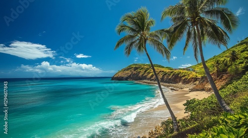 beach, ocean, tropical, palm, tree, sand, sea, coast, summer, vacation, island, turquoise, water, blue, sky, sunny, landscape, nature, travel, paradise, calm, serene, relaxing, idylli, view, tree, sandy, clear, holiday, get-away, escape, beautiful, scenic, vibrant, bright, sun, wave, shore, coastline, caribbean, exotic, destination, photo
