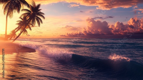 Tropical Beach Sunset: A Serene Coastal Paradise at Golden Hour
