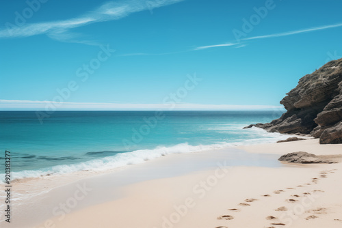 Tropical beach with blue sky and sea. Beach background. Summer beach and sea